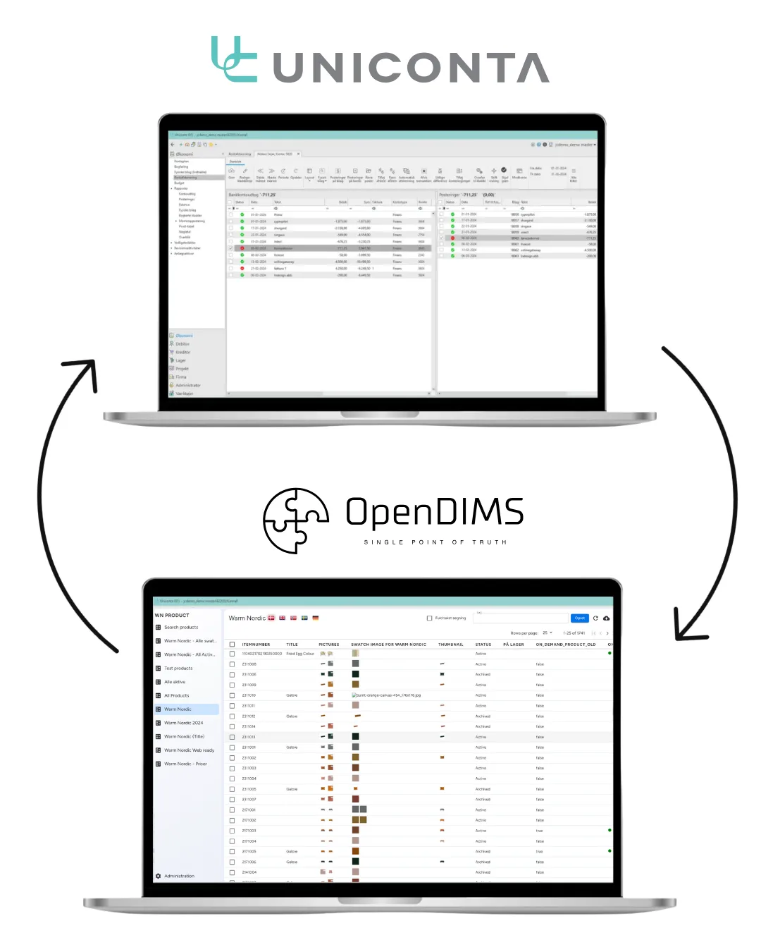 Integrationen er bygget til at være enkel og intuitiv. OpenDIMS PIM sender og modtager data via API’er, hvilket sikrer en stabil og hurtig forbindelse til Uniconta. Uanset om det drejer sig om at oprette nye varer i Uniconta, når de tilføjes i OpenDIMS, eller opdatere lagerstatus i OpenDIMS, når en ordre er gennemført i Uniconta, kan I skræddersy jeres workflows, så de passer til jeres virksomheds behov.